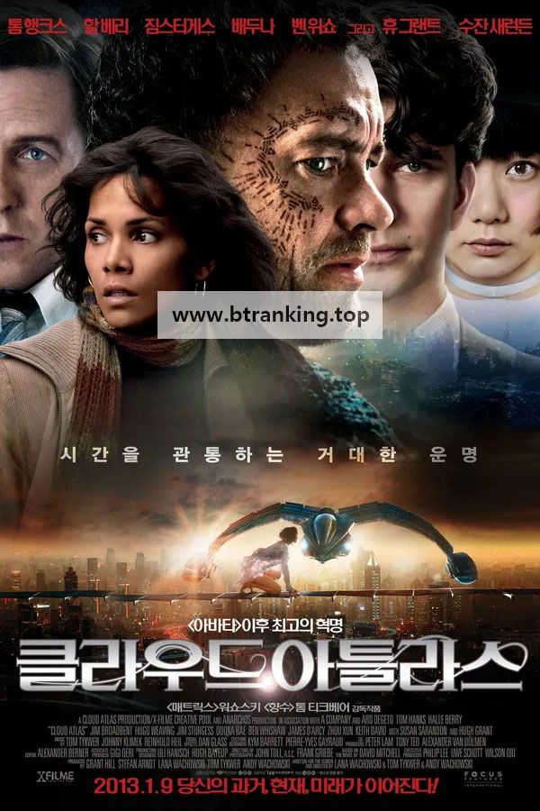 흥미로운 6개의 스토리가 정교하게 연결되어 서로 꼬리의 꼬리를 물듯이 구성된 퍼즐조각과 같은 이야기. 여섯 시대, 여섯 공간의 주인공들이 사실 모두 같은 사람들. ‘윤회사상’을 바탕으로 구름이 하늘을 흘러가듯 영혼도 여러시대를 흘러 각 다른 시대적, 공간적 배경 속에서 그 시대의 문명을 경험한다. 1849년 태평양 항해, 샌프란시스코로 향하는 배를 탄 애덤 어윙은 항해 중 큰 병에 걸리고, 그를 치료하던 동승객 의사에게 의지한다. 그러나 그 의사의 살해대상자가 되면서 생존을 위한 싸움과 모험을 하게된다. 1936년 벨기에, 방탕한 생활로 곤경에 처한 젊은 천재음악가 로버트 프로비셔. 그는 유명 작곡가의 비서로 지내면서 걸작 ‘클라우드 아틀라스 육중주’를 작곡하지만 유명작곡가의 음모로 저작권을 두고 협박을 받고 파멸하게 되는데...
