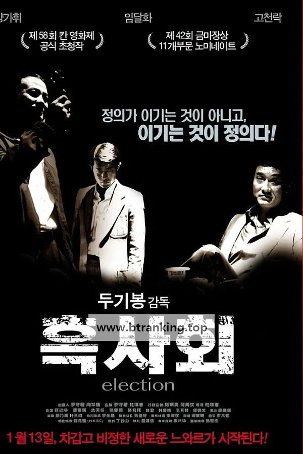삼합회의 차기 회장을 뽑는 모임이 열린다. 록과 따이디, 두 후보의 경합이 치열한 가운데 따이디는 뇌물을 뿌리며 회장이 되고자 노력하지만 현직 회장 텡의 제안으로 차기 회장은 록으로 결정된다. 이 결정을 수락하지 못한 따이디는 삼합회 멤버들에게 린치를 가하고 전통이 서린 용두 단장을 빼앗으려 하지만 결국 용두 단장은 록의 손에 들어가게 되고 2년 뒤 차기 회장이 되게 해주겠다는 록의 제안에 따이디 는 회장 자리를 단념하고 록 밑에서 일하기로 한다. 록과 따이디 는 홍콩 침사추이 지역을 장악하는 등 큰 성과를 거두어 들이지만 결국 록은 호시탐탐 자리를 욕심 내는 따이디 를 낚시터에서 처치하고야 만다.